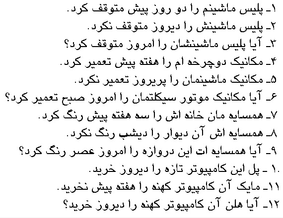۶. آن مرد کتاب را پنج روز پیش ندزدید.
