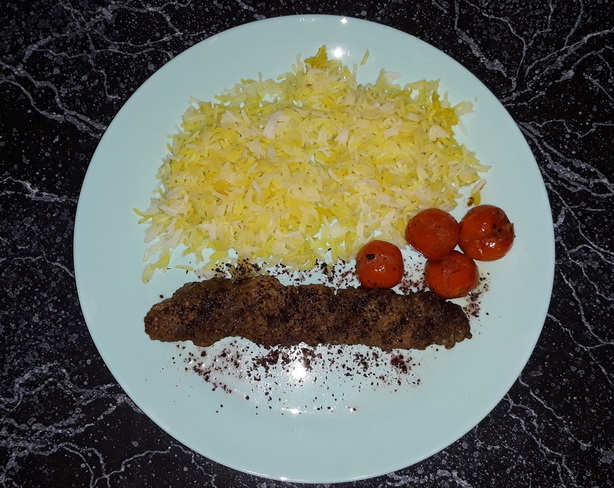 Maso posypeme speciálním kořením somaq a na talíř přidáme ogrilované rajče. Podáváme s rýží nebo chlebem ze střednícho východu.